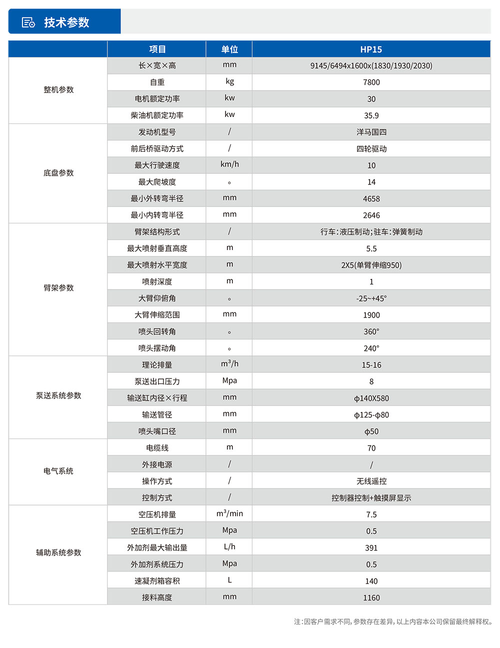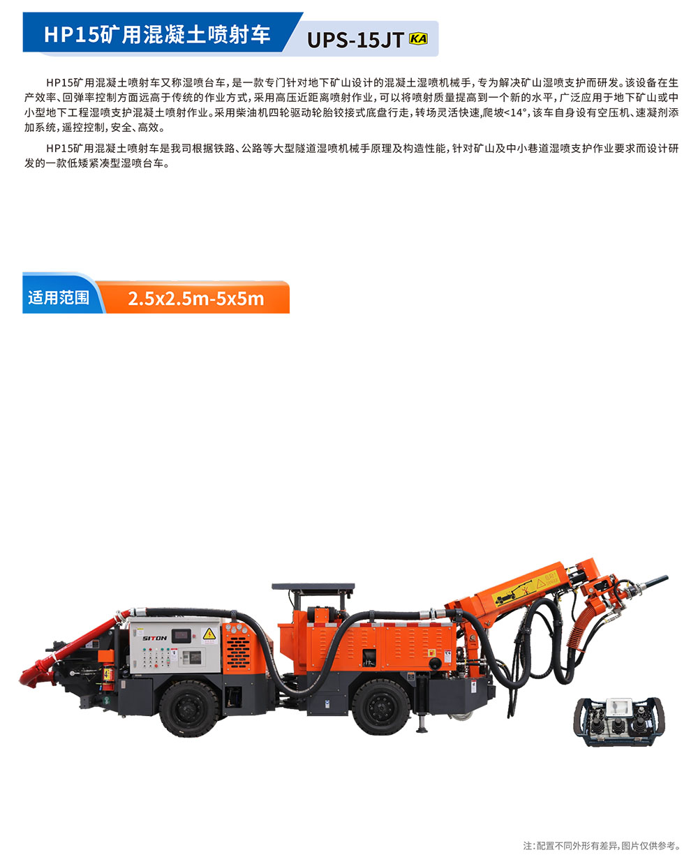 HP15礦?混凝?噴射??稱濕噴臺(tái)?,是?款專?針對(duì)地下礦?設(shè)計(jì)的混凝?濕噴機(jī)械?,專為解決礦?濕噴?護(hù)?研發(fā)。該設(shè)備在?產(chǎn)效率、回彈率控制??遠(yuǎn)?于傳統(tǒng)的作業(yè)?式,采??壓近距離噴射作業(yè),可以將噴射質(zhì)量提?到?個(gè)新的?平,?泛應(yīng)?于地下礦?或中?型地下?程濕噴?護(hù)混凝?噴射作業(yè)。采?柴油機(jī)四輪驅(qū)動(dòng)輪胎鉸接式底盤??,轉(zhuǎn)場(chǎng)靈活快速,爬坡<14°,該???設(shè)有空壓機(jī)、速凝劑添加系統(tǒng),遙控控制,安全、?效。HP15礦?混凝?噴射?是我司根據(jù)鐵路、公路等?型隧道濕噴機(jī)械?原理及構(gòu)造性能,針對(duì)礦?及中?巷道濕噴?護(hù)作業(yè)要求?設(shè)計(jì)研發(fā)的?款低矮緊湊型濕噴臺(tái)?。